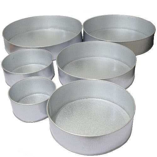 •  Contains 6 Pans: 6” (15.24cm), 8” (20.32 cm), 10” (25.40cm), 12” (30.48 cm), 14” (35.56 cm), 16” (40.64 cm) – all 3” (7.62 cm) Deep.